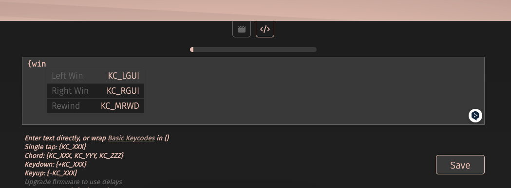 ๋งฅ์์ ์ปค๋ฉ๋๋ Left Winow ํค์ ๋์ผํ๊ธฐ ๋๋ฌธ์ Ctl + C๋ฅผ ์ง์ ํ๋ ค๋ฉด KC_LCUI, KC_C ๋ ๊ฐ๋ฅผ ์ง์ ํด ์ฃผ๋ฉด ๋์. Save ๋ฒํผ์ ๋ฐ๋์ ๋๋ฌ ์ ์ฅํด ์ค๋๋ค.