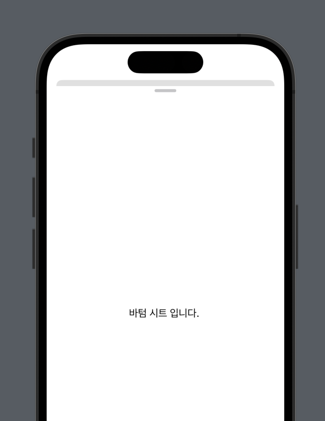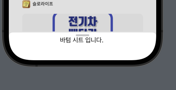 - content๋ก ์ ๋ฌํ๋ view์ presentationDragIndicator(.visible) modifier๋ฅผ ์ถ๊ฐํ๋ฉด sheet ์๋จ์ ํธ๋ค๋ฌ๊ฐ ์๊ธฐ๋ ๊ฒ์ ํ์ธํ ์ ์์