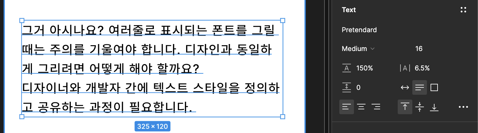 - ํผ๊ทธ๋ง์์ ํ ์คํธ์ ์์ญ๊ณผ SwiftUI์ Text์ ์์ญ์ด ๋ค๋ฆ. SwiftUI์ Text๋ ํ ์คํธ์ ๋ฑ ๋ง๊ฒ ๋์ค์ง๋ง Figma๋ ํ ์คํธ ์์ญ์ ์ค๊ฐ์ ํ ์คํธ๊ฐ ์์นํด ์๊ธฐ ๋๋ฌธ์ ์ด๋ฌํ ์คํ์ ์ ๋์์ด๋์ ํจ๊ป ์ด์ผ๊ธฐ ํด์ ์ง์ ํ๋ ๊ฒ์ด ํ์