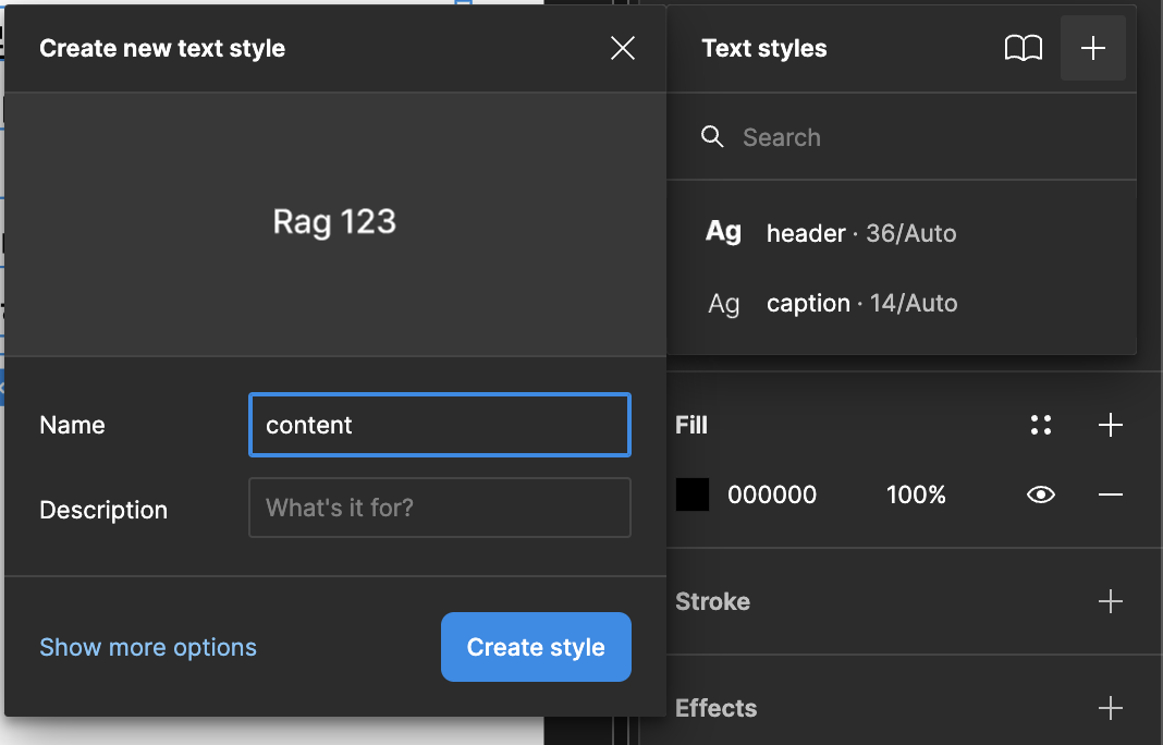 - ์๋ก์ด ํ ์คํธ ์คํ์ผ์ ์ด๋ฆ์ ์ง์ ํ ๋ค create style์ ๋๋ฌ ์ ์ฅ