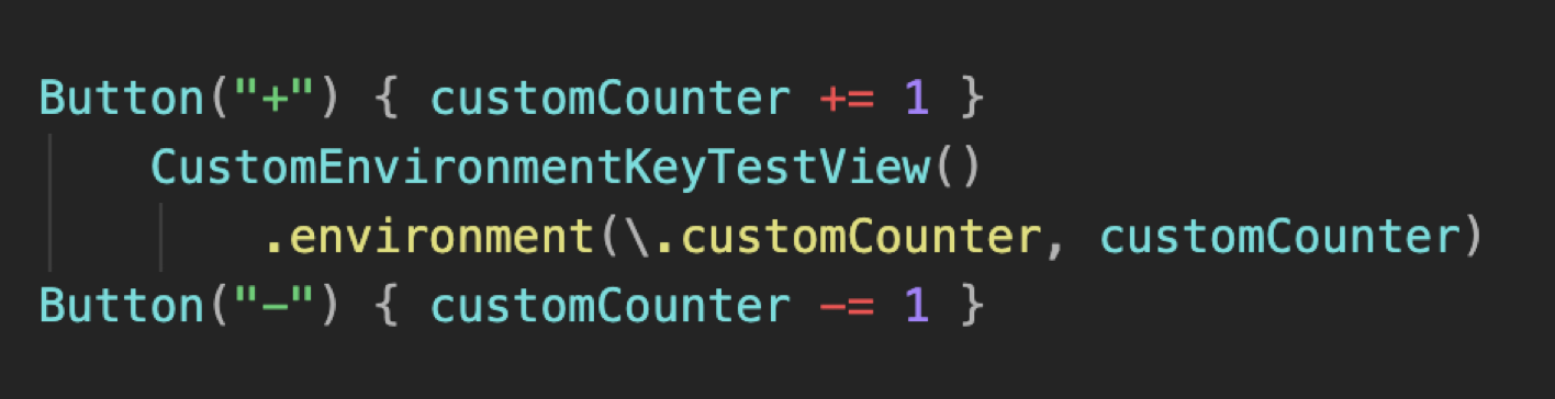 사용자 정의 키값을 정의하고 Environment에서 사용할 수 있다. custom environment를 추가하기 위해서는 Key와 Value를 정의해 주어야 한다. 각각 EnvironmentKey, EnvironmentValues를 사용한다.