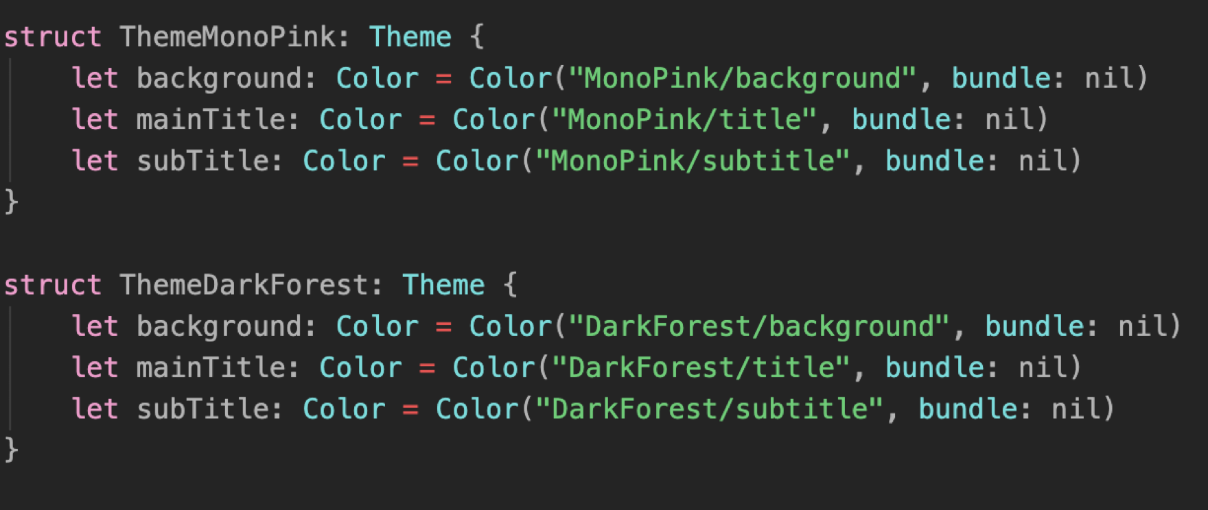 각 테마를 Theme 프로토콜을 사용해서 정의해 준다.
