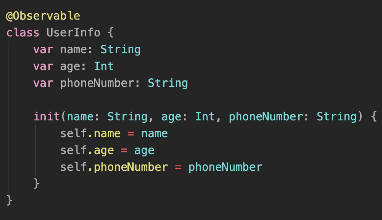 @Observable 매크로를 사용해서 클래스를 정의해준다.