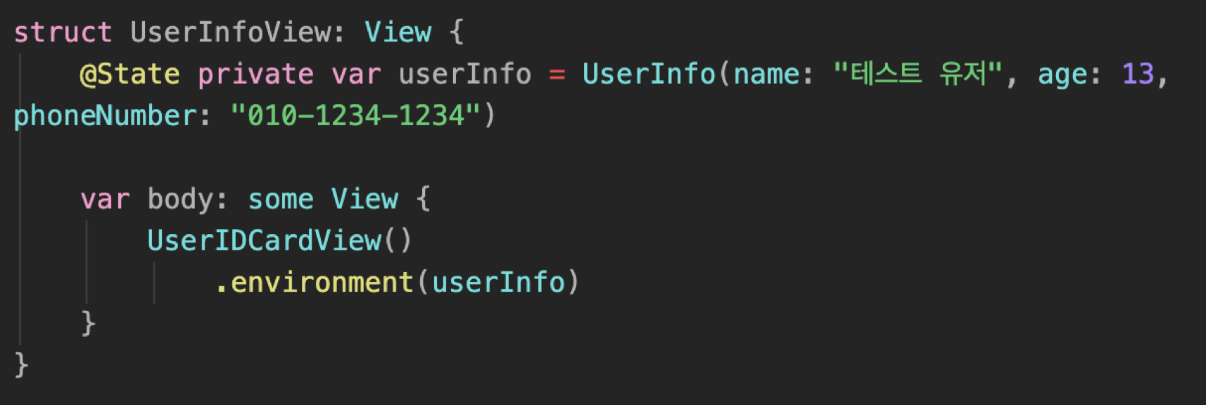 상위뷰에서는 키패스 필요 없이 environment modifier을 사용해서 해당 객체를 뷰 계층으로 주입할 수 있다.