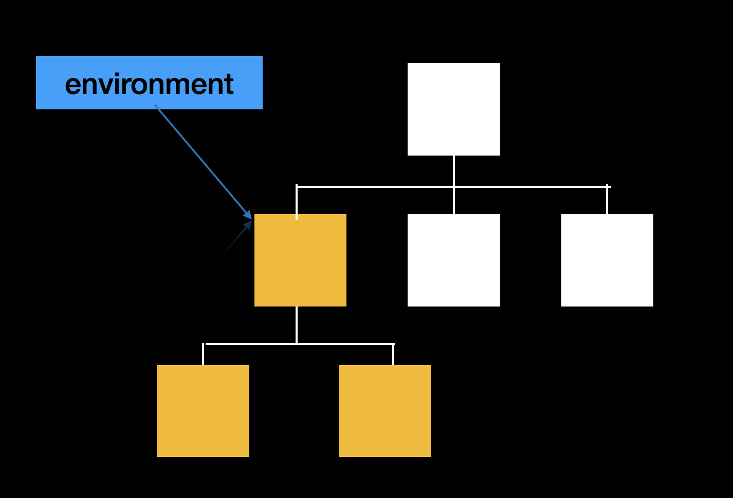 즉, 상위 뷰에서 environment를 지정한 경우 하위 계층 구조도 그 값으로 지정된다.